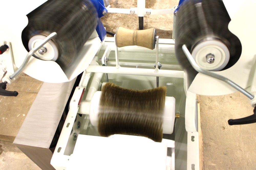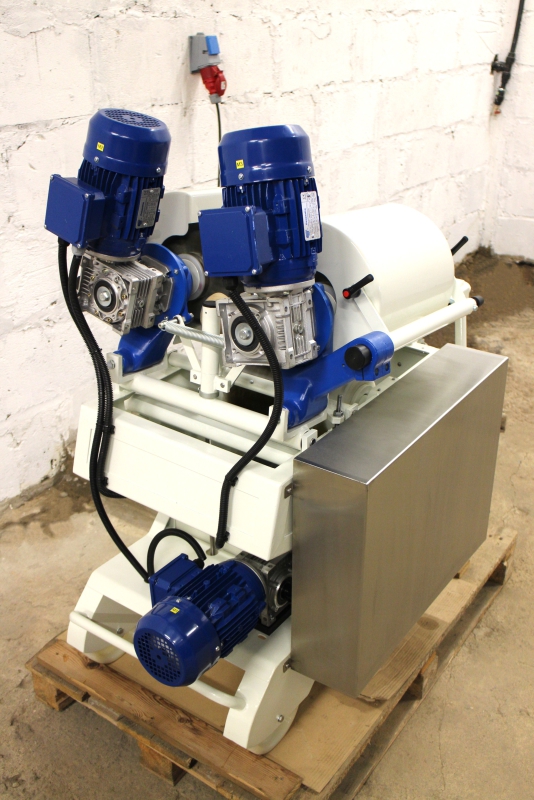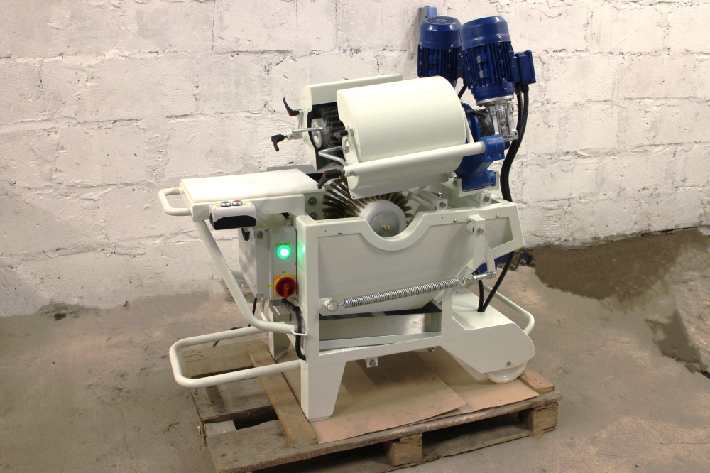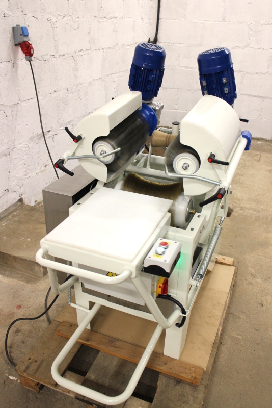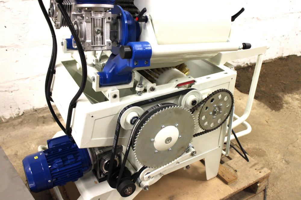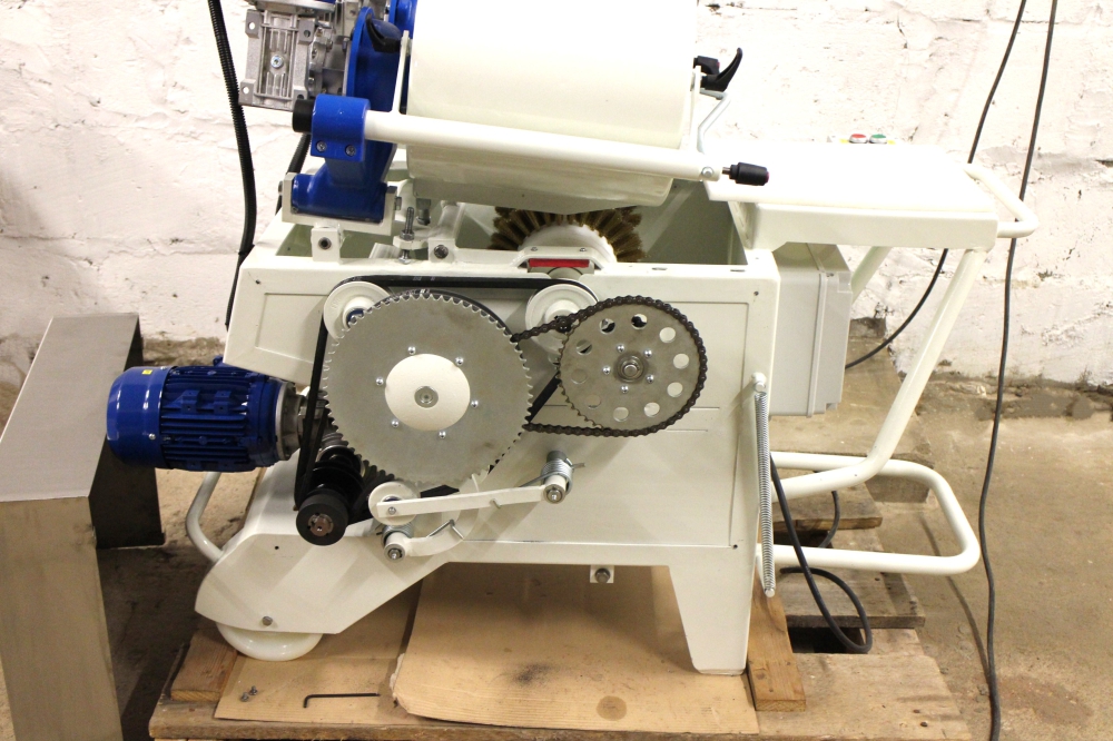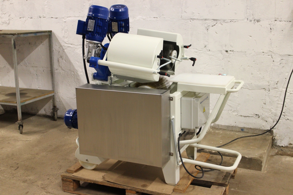 Kõva juustu puhastusseade ehitatud kliendi soovil ümber, vahetatud KÕIK võimalikud kuluosad, raam ja detailid liivapritsitud ning hiljem värvitud kui ka galvaniseeritud. Masinal sai muudetud puhastusharjade kiirus 1500-lt pöördelt minutis, pööretele 97 pööret minutis, et oleks võimalik kasutada juustu puhastusel teras harjasid. Koostatud uus elektrikilp ja masina juhtimine. Kokku tehtud kaks samasugust masinat.
